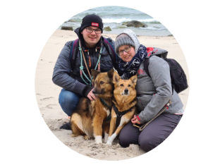 Janice , mein Mann Felix und unseren Hündinnen Frieda & Indra.